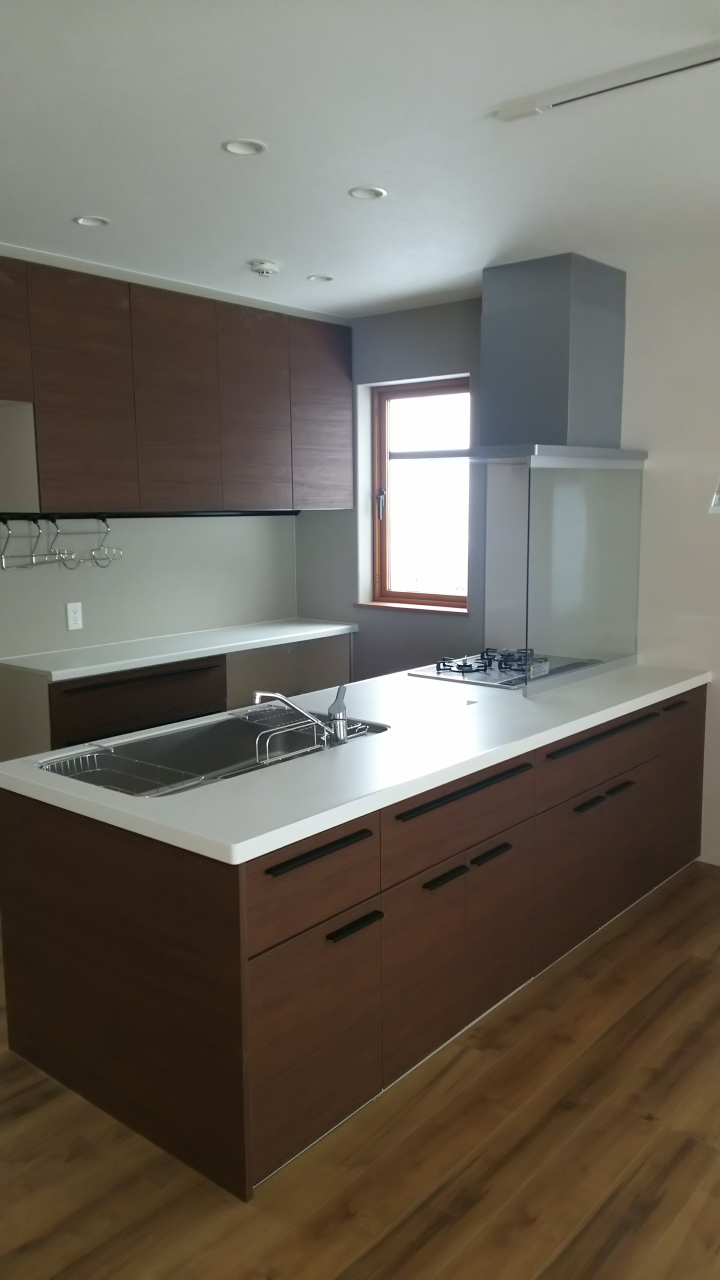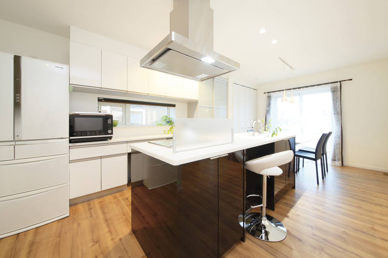 広いキッチンスペースに存在感のあるアイランドキッチン